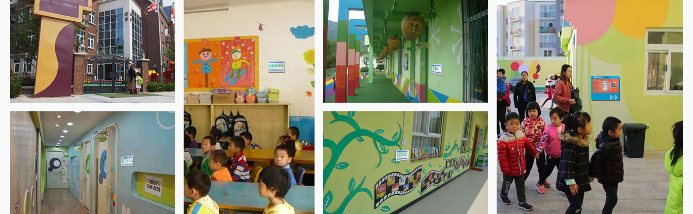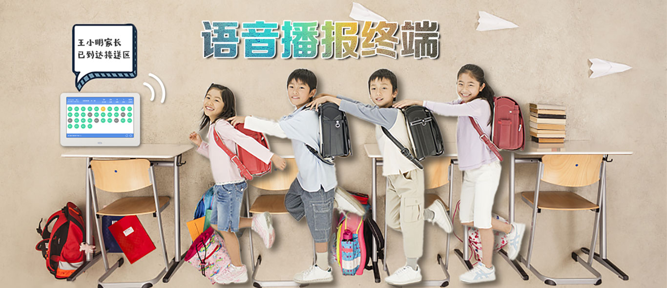 在家长接送等待区安装一台或多台多媒体签到机,每个教室安装一个播报终端机。家长到达学校后,使用
